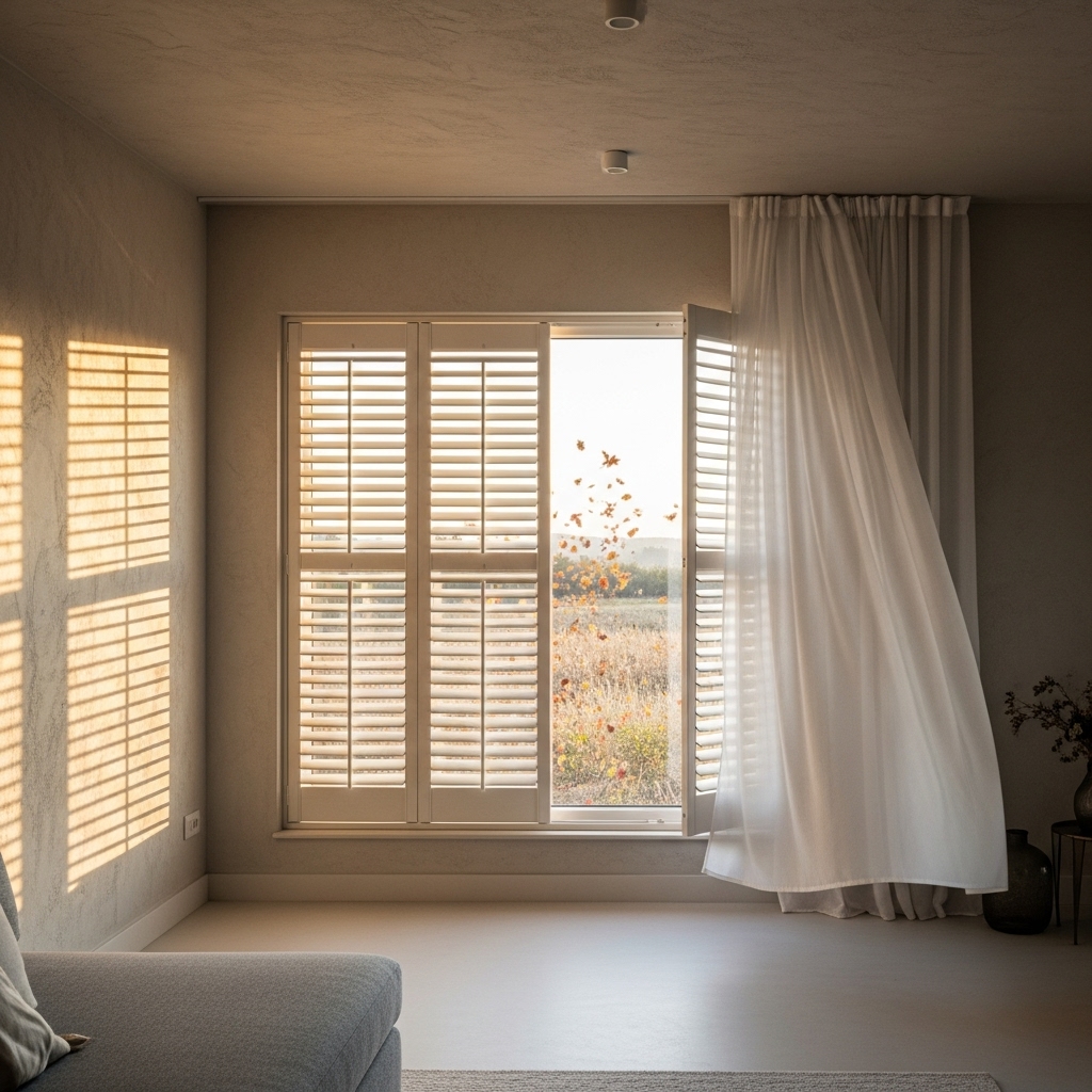 Beyond visual comfort, shutters add tangible thermal buffering. In homes where west-facing windows heat up rapidly, a well-fitted shutter creates a still air pocket between the louvered panel and the glass. That small layer helps slow heat gain, complementing your insulation and boosting everyday efficiency. In the evening, when temperatures drop and breezes pick up, closing the panels helps the room retain warmth. The effect is modest yet meaningful—most people feel it first, noticing fewer hot spots, fewer chilly drafts, and a general sense that rooms stay within a narrower, more comfortable range.