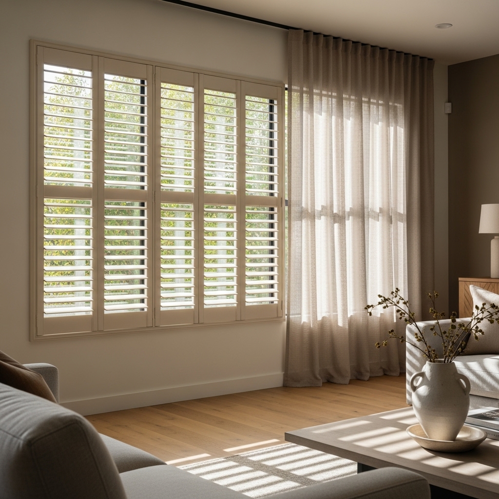 Absolutely. Many people layer soft side panels for texture while relying on the shutters for daily privacy and light control. The result is a room that feels finished but flexible for different occasions.