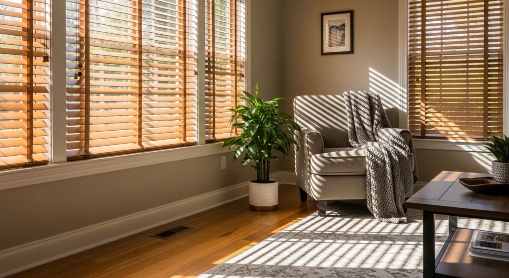 Creating a Balanced Indoor Lighting Environment Wood blinds provide precise control over how much natural light enters a room. By adjusting the slats, homeowners can reduce […]